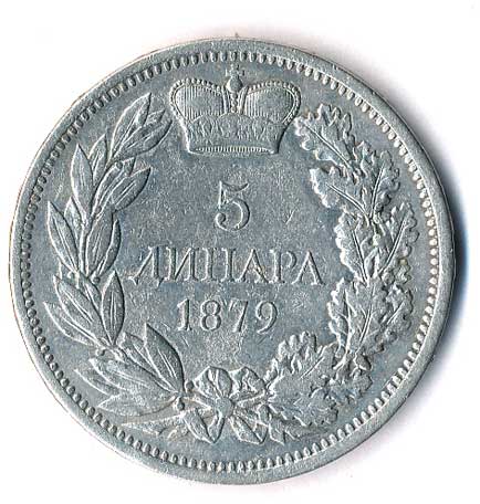 959. 5 Dinara 1879, Ag 1-1- 1300,- 2200,-