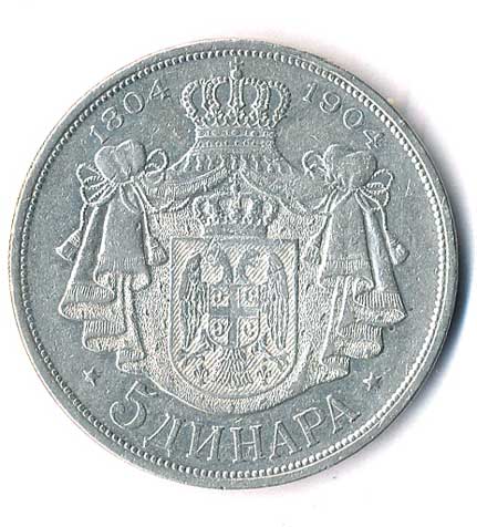 960. 5 Dinara 1904, 100.výročí dynastie Karadordević, Ag, téměř 1-1- 1500,- --.-