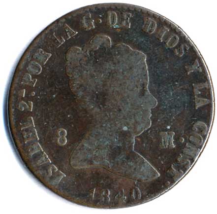 961. 8 Maravedis 1840, Isabel II. 1836-1858 1-2- 130,- --.-