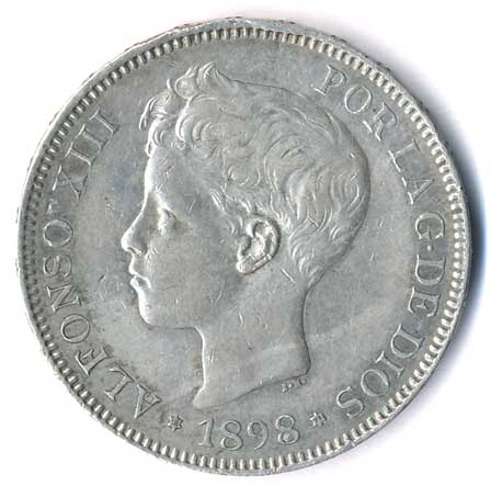 962. 5 Pesetas 1898, Alfonso XIII. jako desetiletý chlapec 0-1 600,- 600,-