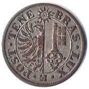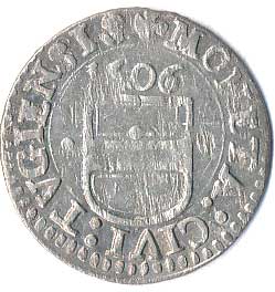 914. 1 Follaro b.l. (1452-1612), hlava muže, MONETA RACVSII / tři věže s branou,