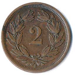 982. 2 Rappen 1883, patina 1/1 60,- --.-