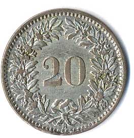 985. 20 Rappen 1859, nepatrné vady na hraně (výjimečný stav) 0-1 600,- --.-