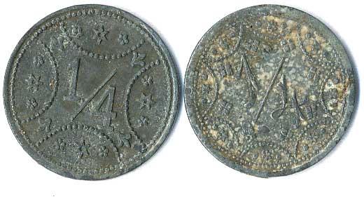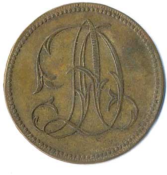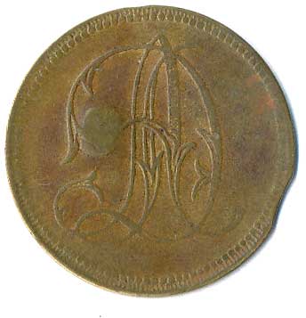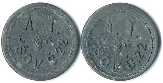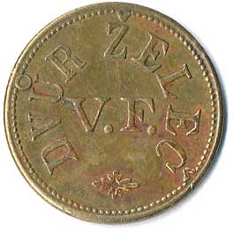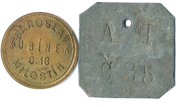 | 1219. | AD - Anton Daher, v plechu vytlačený monogram, kontramarky 4 a V, ŽK27 | 1-1- | 100,- | --.- |