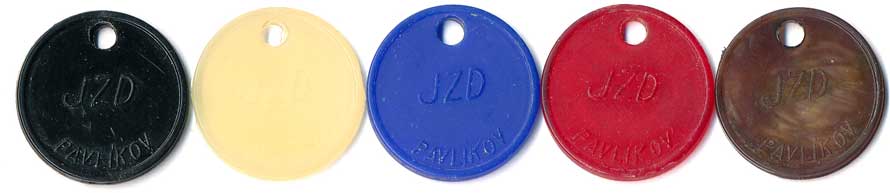 | 1210. | JZD Pavlíkov, černá, světlý okr, modrá, vínová, tmavošedá žíhaná, UH25, 5ks | 1-1- | 80,- | 550,- |