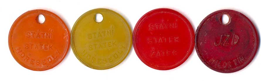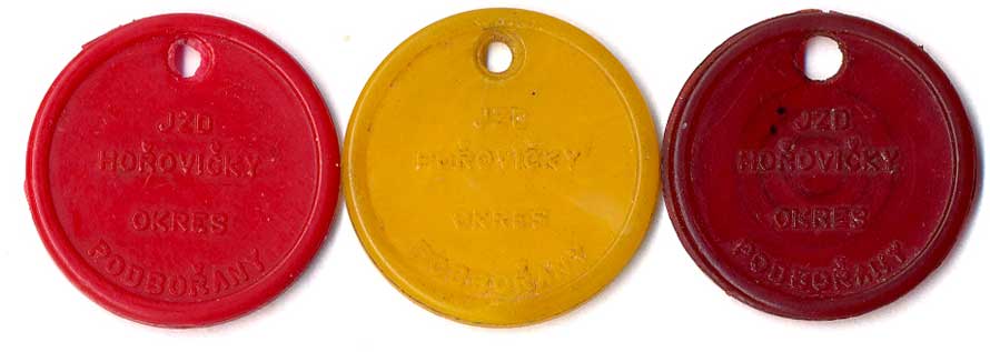| 1215. | JZD Hořovičky okres Podbořany, červená, žlutá, vínová, UH25, 3ks | 1-1- | 50,- | 320,- |
