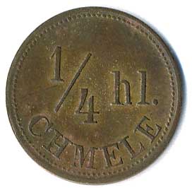 | 1233. | Václav Heidenrtaich Lipenec č.56 / 1/4 hl. chmele, kontramarka kruh, Cu21 | 0/0 | 100,- | 900,- |