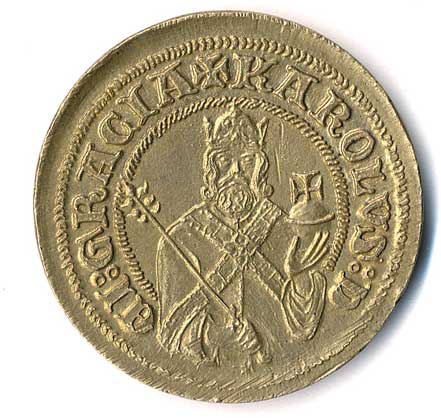 | 1272. | Karel IV. - medailová napodobenina dukátu, na hraně punc HP,
