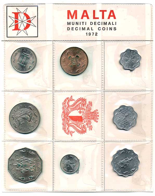 | 1298. | Malta - sada 1972, 2,3,5 Mils, 1,2,5,10,50 Cents, UH přebal, místy zelený povlak | 0/0 | 90,- | 90,- |