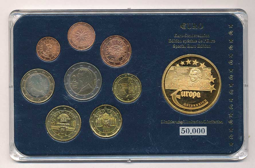 | 1304. | Rakousko - sada 2002, 1 Ct. až 2 Euro + medailka 5000 Schilling, ŽK40 | 0/0 | 100,- | --.- |