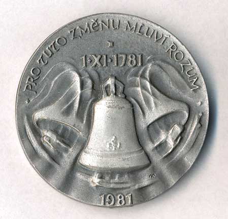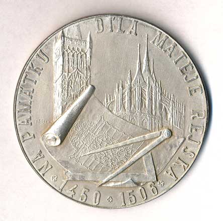| 1519. | Karel IV. - upomínková medaile - poprsí císaře Karla, v pozadí gotický chrám /
