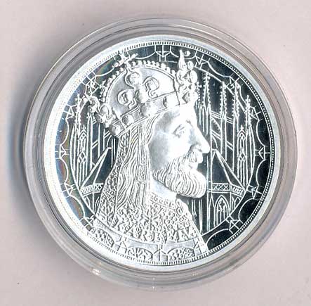 | 1518. | Karel IV. - upomínková medaile - poprsí císaře Karla, v pozadí gotický chrám /