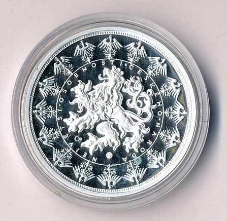 český lev zleva, po obvodu orlice, Ag999 40/30g, etue |