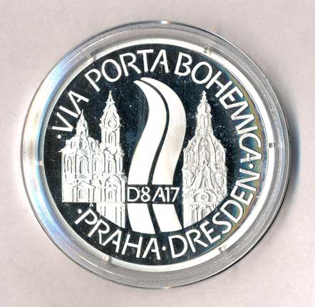 obou měst, dálnice, opis / erby zúčastněných, dvojjaz.opis, Ag50/42g, certifikát kapsle, etue, 180ks, na hraně 3x datum 21.12.2006, (Oppl V.+ Doubek F.) |