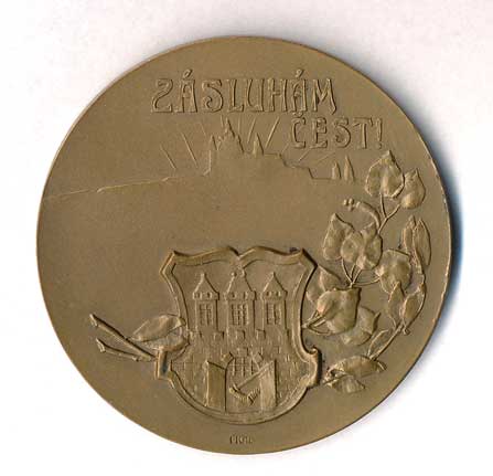 domy, zbraně, opis, sign., Br60, patina, (Kolářský Z.) |