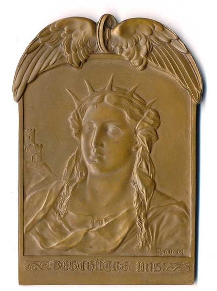 Žena s ratolestí, medailonek s císařem Vilémem / výstavní palác, datace, opis, Zn51 |