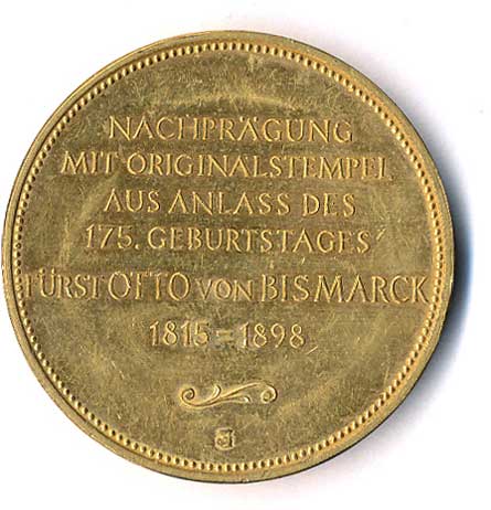 | 1566. | Bismarck - 175. výročí narození - hlava zleva, opis / 6-ti řád.náp., zlac.Br35 | 0/0 | 500,- | 500,- |
