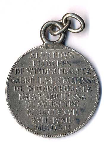 | 1579. | A.Windischgrätz a G.Aversperg - žeton na stříbrnou svatbu 1902, rodové erby /