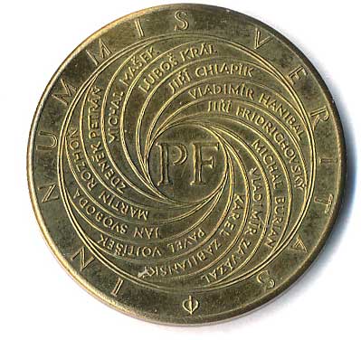 PF, z něho vystupující jména, opis IN NUMMIS VERITAS, Br30, (Oppl Vladimír) |