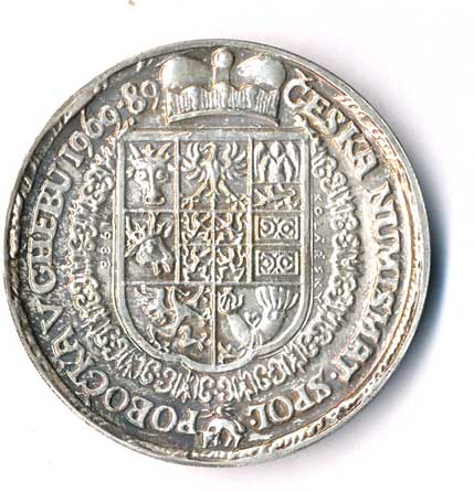 | 1589. | ČNS Cheb 1989 - tolar - Albrecht z Valdštejna mírně zprava, opis / korunovaný