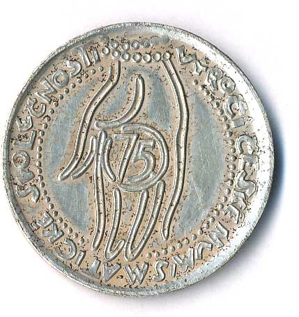 | 1592. | ČNS Praha - medaile k 75.výročí založení - mince s číslicí 75 na dlani, opis / replika