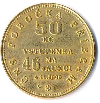 | 1600. | ČNS Příbram-50kč vstupenka na 46.aukci 4.11.2000-čtyřřád.náp.,číslice, datace, opis /