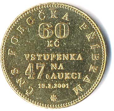 | 1601. | ČNS Příbram-50kč vstupenka na 47.aukci 10.3.2001-čtyřřád.náp.,číslice, datace, opis /
