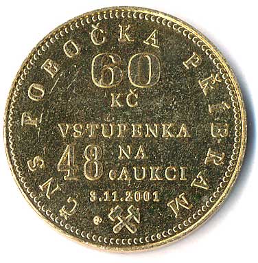 | 1602. | ČNS Příbram-60kč vstupenka na 48.aukci 3.11.2001-čtyřřád.náp.,číslice, datace, opis /