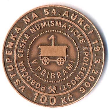 | 1605. | ČNS Příbram-100kč vstupenka na 54.aukci 19.3.2005-vozík s číslicí jedna, datace,