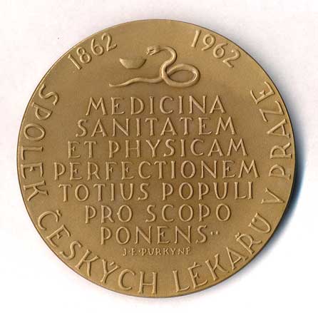 | 1610. | J.E.Purkyně - Spolek českých lékařů, 100 let 1862-1962 - poprsí zleva, opis / had