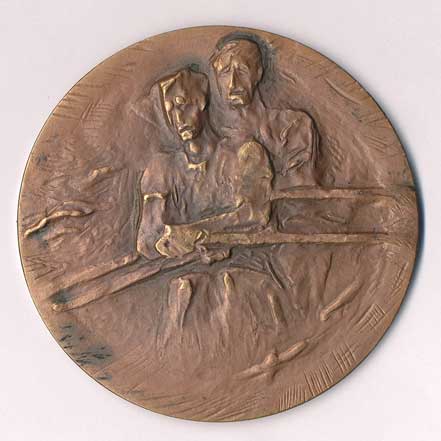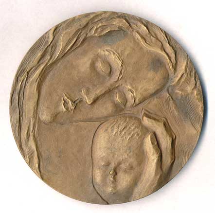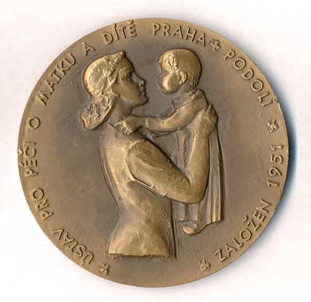 opis / Ústav pro péči o matku a dítě Praha-Podolí, založen 1951, matka s dítětem v náručí, opis, sign. Bódi, Br70, etue |