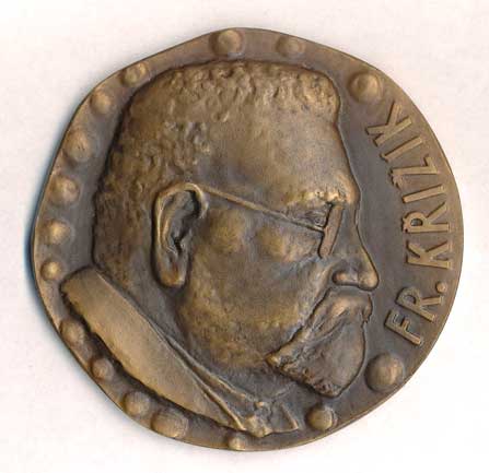 František Křižík- hlava zprava, opis / emblém VŠSE, opisy, Br70, etue |