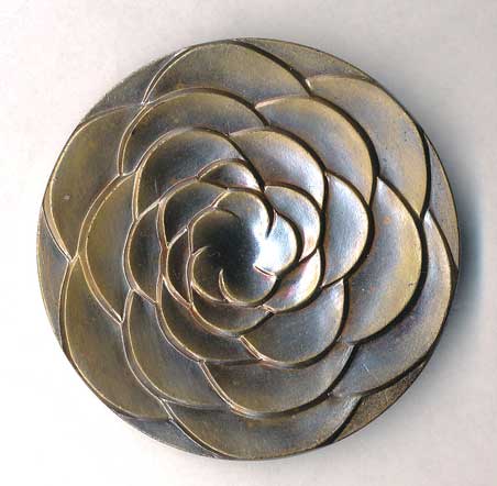 soví hlava, nápis, opis / rozvitý květ, Br51, etue |