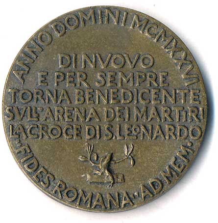 | 1626. | Řím FIDES, medaile přátelství 1926-kříž sv.Leonarda v koloseu ratolesti / pětiřád.