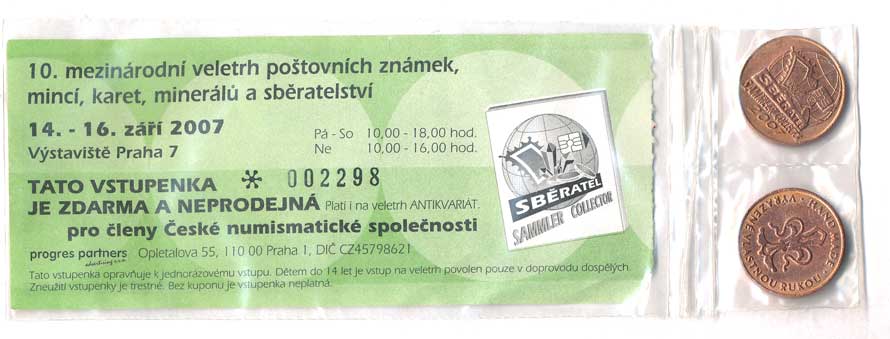 | 1666. | 10.mezinárodní veletrh poštovních známek-papírová vstupenka, 2x žeton, Cu20, vše