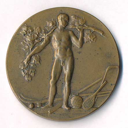 nahý cvičenec s ratolestí, pod ním sportovní náčiní / pětiřád.náp., datace, sign.PICHL, JS, Br42 |