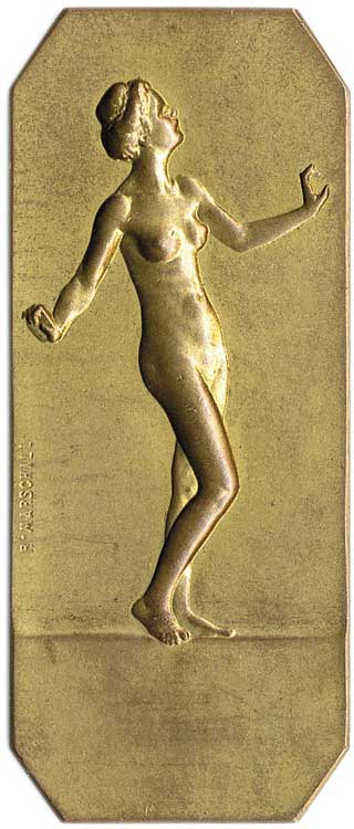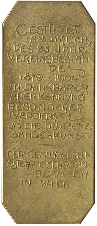 1875-1905, prémie za "speciální" služby německému zpěvu u příležitosti 25.výr.založení - ženský akt, sign.R.Marschall / 16 řád. náp., zlac.Br31x75, patina |