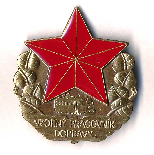 | 1686. | Vzorný pracovník dopravy-rudá hvězda, tramvaj, náp., ratolesti, Br44x49, špendlík | 0 | 100,- | 130,- |