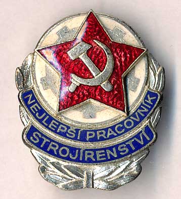 | 1692. | Odznak "Nejlepší pracovník strojírenství", smalt, stříbř.kov 25x31, špendlík | 1/- | 100,- | --.- |