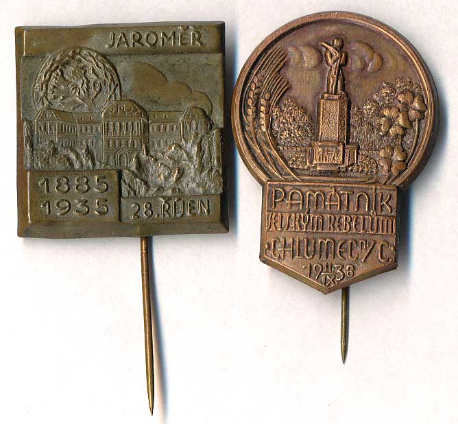28.říjen Jaroměř, 1885-1935, Br plech26x25 s jehlicí, 2ks |