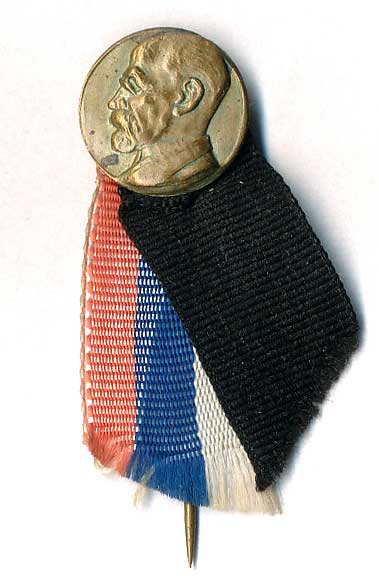 | 1697. | Smuteční odznak k úmrtí T.G.Masaryka (1937) - poprsí presidenta, trikolórní a
