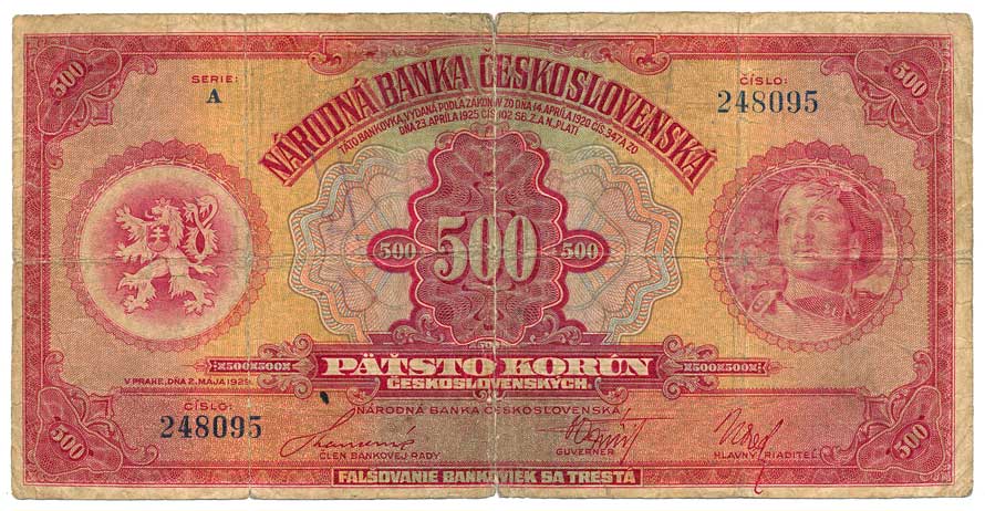 | 2019. | 500 Kč 1929, s.A, dotisk čárky MÁJA | 3-4 | 3000,- | --.- |