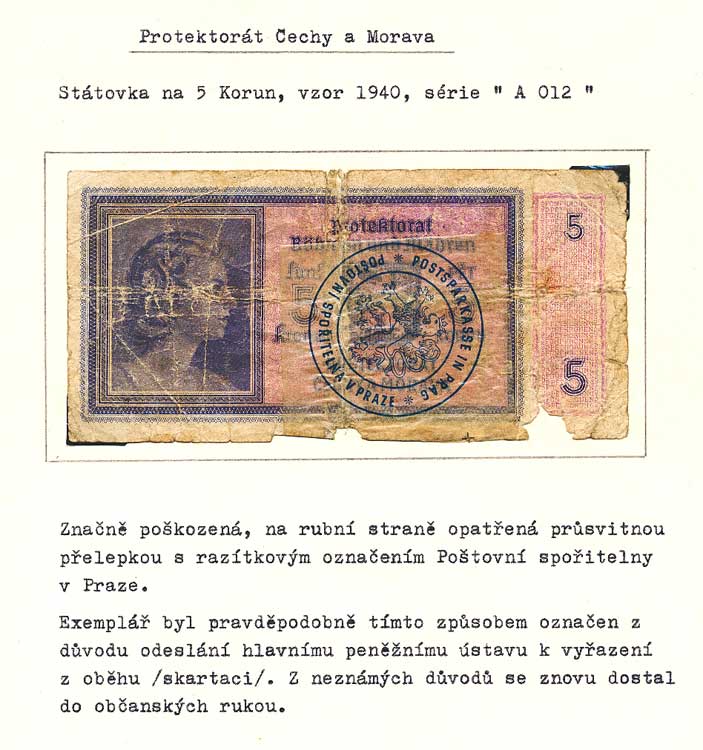 | 2028. | 5 K (1940) s.A012, určená ke skartaci, protektorátní přelepka spořitelny | 5 | 50,- | --.- |