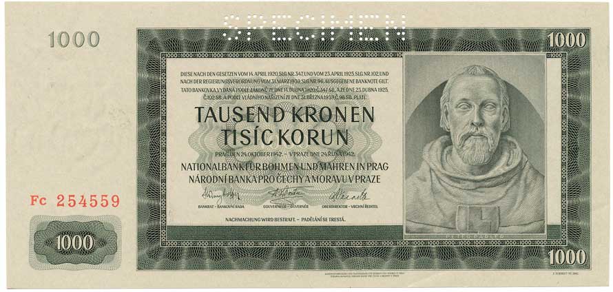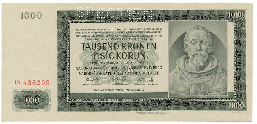 | 2033. | 1000 K 1942 s.Ib, II.vydání, SPECIMEN | N | 400,- | 500,- |