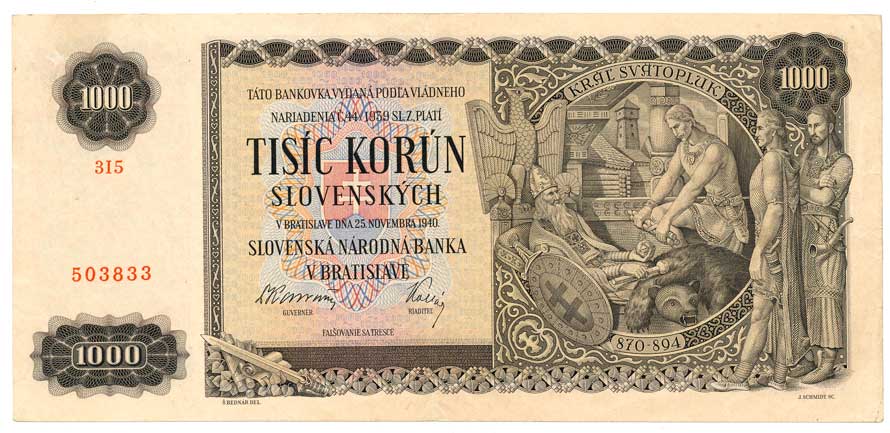 | 2037. | 1000 Ks 1940 s.3I5, vlevo na Rv. nepatrné zažloutlé skvrnky | 1 | 1600,- | --.- |