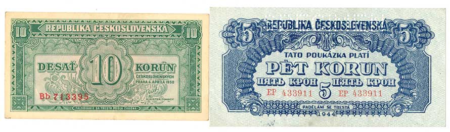 | 2041. | 5 K 1944, s.EP, SPECIMEN, 10 Kčs 1950 s.Bb, 2ks | 1 | 100,- | --.- |