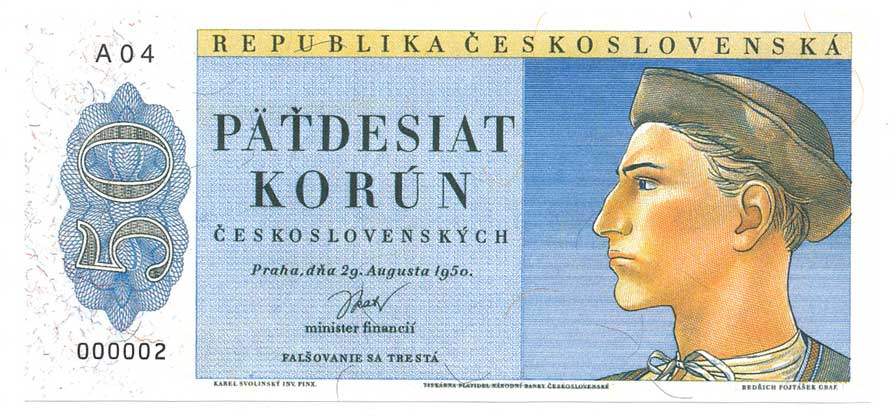 | 2052. | 50 Kčs 1950, s.A05, Jánošík, oficiální faksimile nevydané bankovky (ENA) | N | 300,- | --.- |