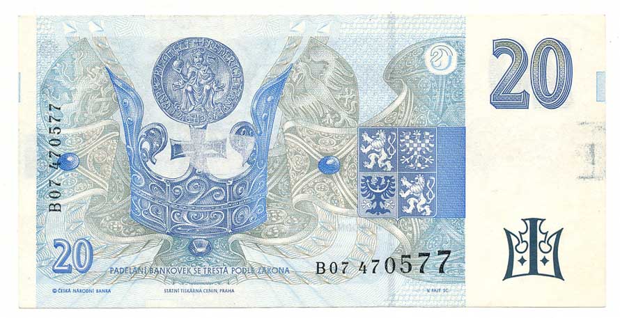 | 2014. | 20 Kč 1926, s.Hf, vpravo dole ohlý roh v místě vodoznaku | N | 1000,- | --.- |