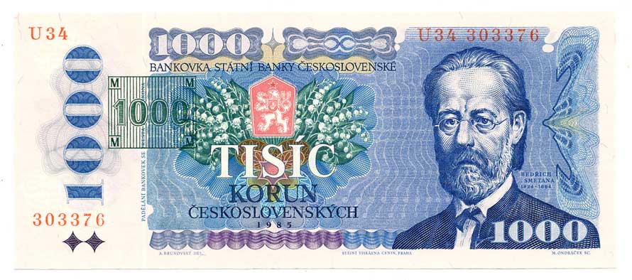 | 2105. | 1000 Kčs 1985 s.U24, lepený kolek | 2- | 2400,- | --.- |