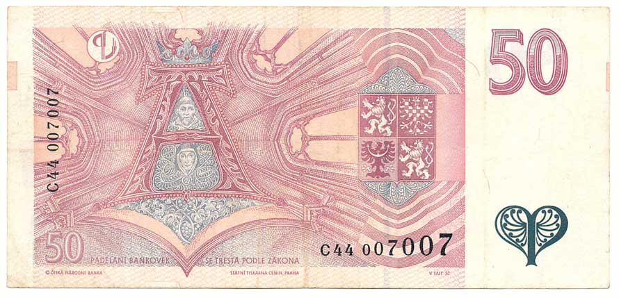 | 2106. | 50 Kč 1993 s.C44, č. 007007 (James Bond) | 2 | 400,- | --.- |